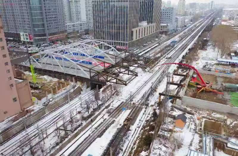 该工程上跨京哈铁路、长春轻轨3号线,地理位置复杂、交通流量大。如何确保顶推安全,是本工程的难点,也是重点。