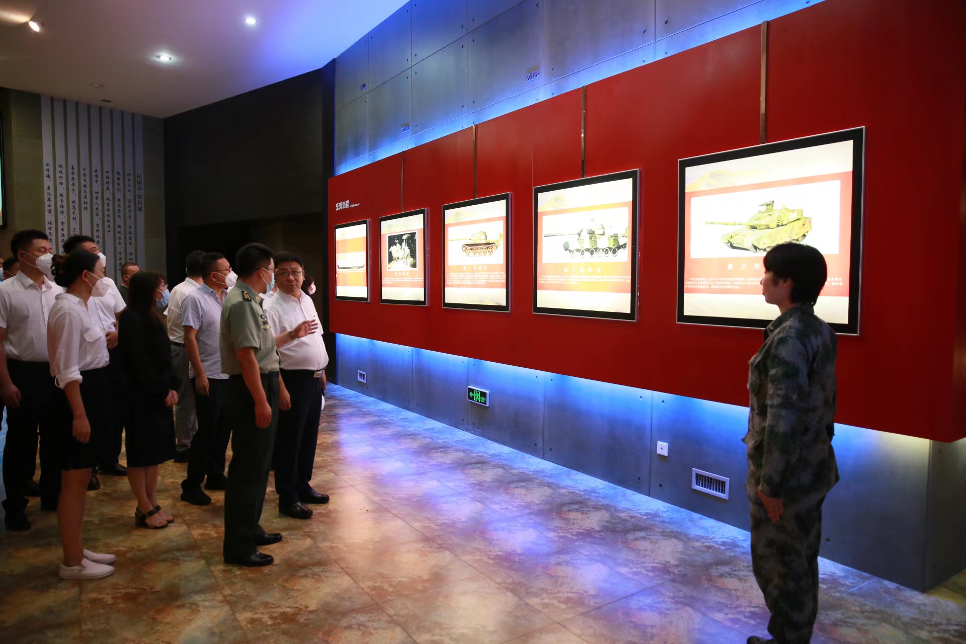 随后,一行人前往参观了战士宿舍并观看展示片,干净整洁宿舍环境体现了学院的纪律性和战斗力;最后,在坦克展示区,讲解员细致地讲解了我国建国以来坦克的发展史,通过不同坦克特点和发展变化过程,体现我国国防军事能力的飞跃式发展。