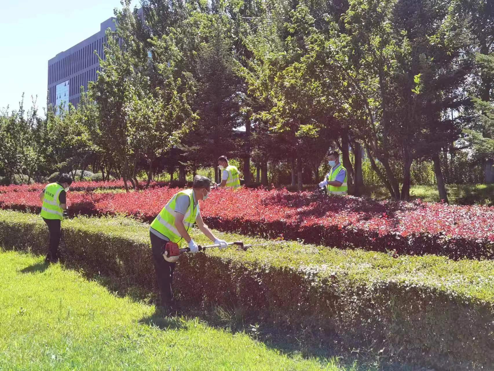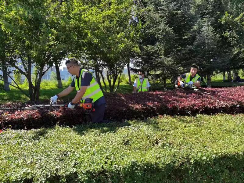 净月开发区园林绿化养护(公园管理、裸露地面治理)一标段养护项目为城建集团2022年下半年重点养护项目之一,由城建集团新成立的养护分公司负责组织实施,该项目包括88条街路、8个公园,其中精品养护街路23条,精品养护公园4个,养护面积达355万㎡,在养护管理过程中,养护分公司将养护地分成10大区域进行网格化管理,目前已完成四轮绿篱、灌木及草坪修剪、除杂等工作,此次活动的范围为该项目的第五网格区,主要负责完成天青路和生态东街交汇西侧500㎡的绿篱修剪和1000㎡的草坪除杂任务,9点20分党员同志们提前到达活动现场,穿戴好反光马甲、白手套,在党支部书记、执行董事兼总经理徐鹏同志的带领下,男同志们手持绿篱修剪机开始对街路两旁的灌木、模纹进行修剪,女同志们带好手套开始进行绿地除杂、捡拾垃圾,炎炎秋日当头,党员同志们虽已汗流浃背,但劳动的热情确丝毫没有消减,2个小时后随之展现在眼前的是修整过后干净整齐的街路景观。