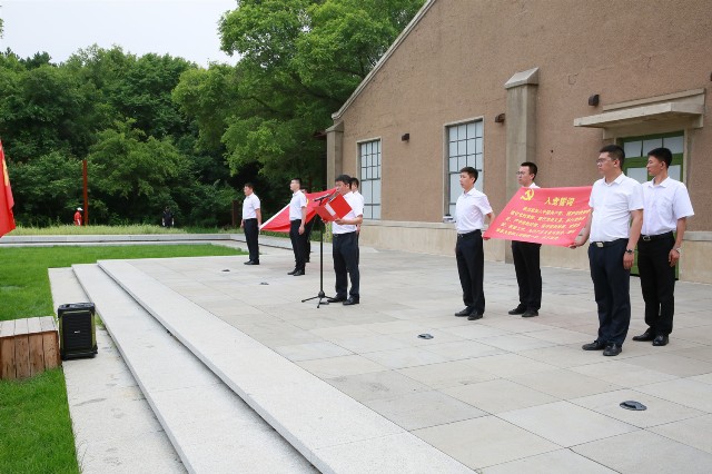 讲解结束后,全体党员来到草坪广场,在鲜红的党旗下重温入党誓词,现场顿时响起了激昂的宣誓声,每名党员都用发自内心的声音抒发对党忠诚的决心,面对着党旗,大家接受了一次身心的特殊洗礼。