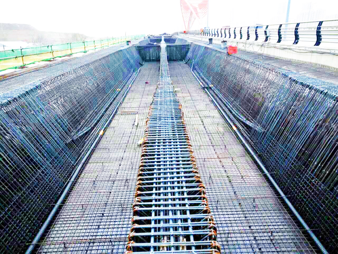 本工程于2015年6月15日开工建设,2016年3月15日复工建设。截至目前,钻孔桩共计916根,目前完成886根,占总量96.72%;承台共计156座,目前完成147座,占总量94.23%;墩台共计179座,目前完成163座,占总量91.06%;盖梁共计13个,目前完成8个,占总量61.54%;现浇箱梁27联,目前完成13联,占总量48%。钢箱梁完成吊装3孔,占总量75%。