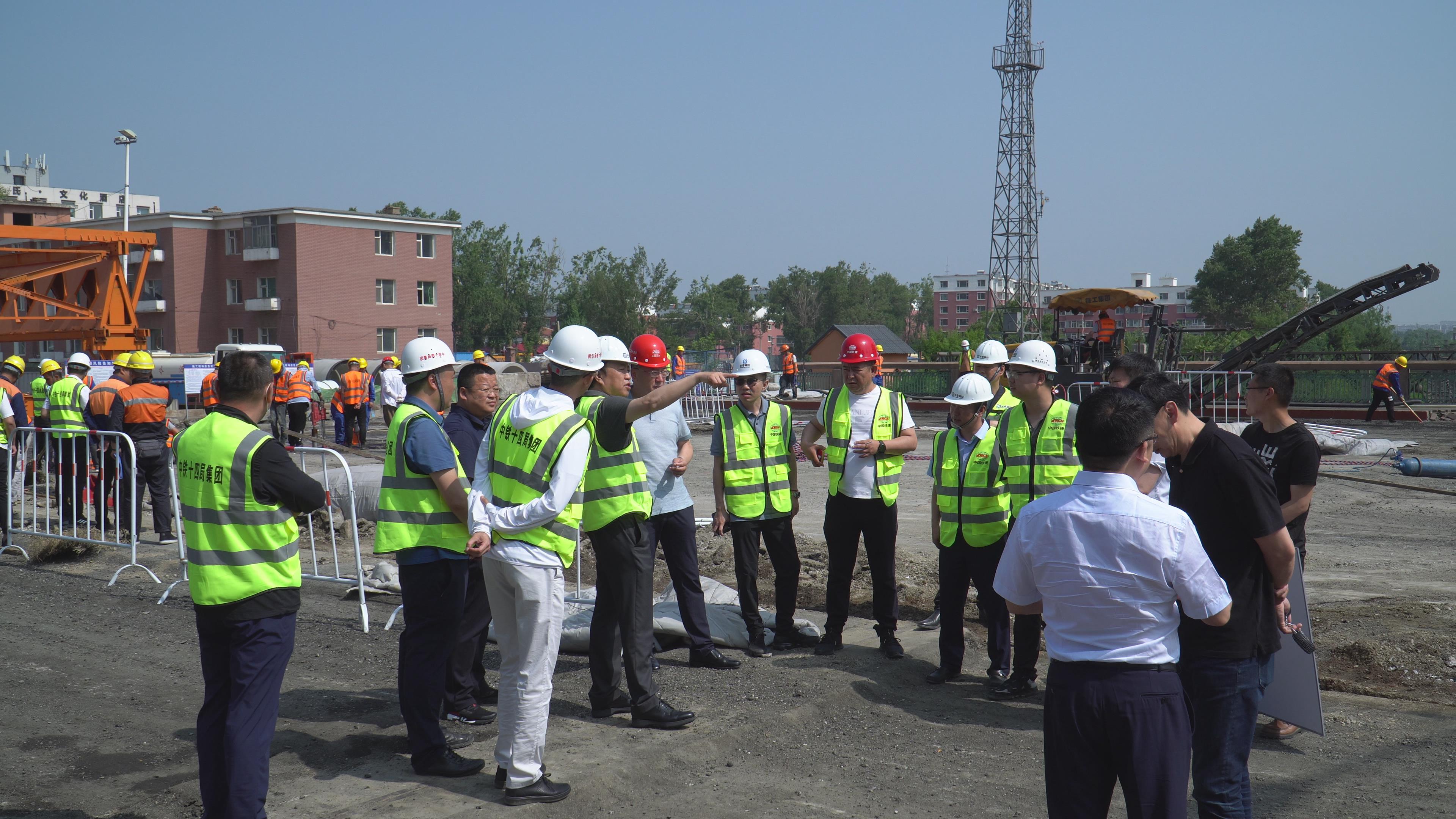 16日上午,市建委主任林巍、副主任李长城,建管中心主任马俊、总工程师曲正民、工程部副部长姚涛,电竞博彩 集团党委书记、董事长曹文生、总经理傅强、副总徐侃来到西安桥改造工程施工现场检查、指导工作。