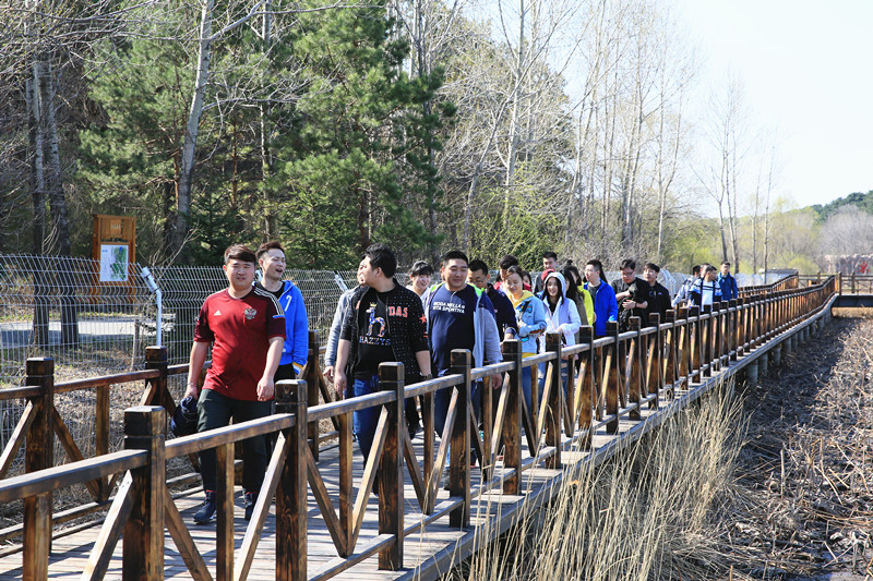 明媚的春天,走出户外,投入美丽的大自然怀抱,感受户外行走的快乐。2017年4月28日,电竞博彩 公司工会组织了“青春向党、绿色出行”徒步活动。早上8点全体员工净月公园西门集合,由公司董事长周勇同志带队,挥舞着“电竞博彩 公司”的旗帜,从净月潭公园西门出发,途径东北虎园、森林浴场,终点为滑雪场。